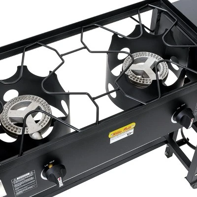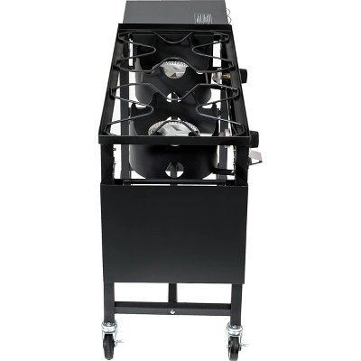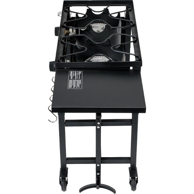 The Barton Outdoor Camping Propane Double Burner Stove Station features twin 58,000 BTU propane stoves and convenient drop-down side tables made to be compact and portable for a diverse selection of outdoor cooking applications. This outdoor cooking stove is perfect for on-the-go cooking when bringing friends or family for some outdoor camping and adventure fun. Easily transport the double burner stove on and off the campsite using its built-in swivel caster wheels for quick mobility and easy transport.