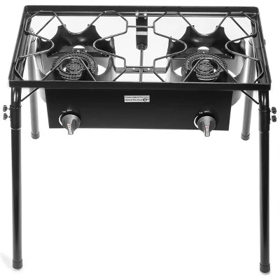 The Barton Outdoor Camping Propane Double Burner Stove Station features dual 70,000 BTU propane stoves made to be compact and portable to move around. This outdoor cooking stove is perfect for on-the-go cooking when bringing friends or family for some outdoor camping and adventure fun. Easily transport the dual burner stove on and off the campsite lightweight frame for quick mobility and easy transport