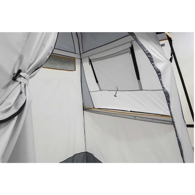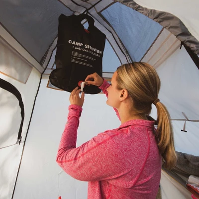 Whether you need a place to change clothes, shower, or have extra privacy when “nature calls,” the Browning Privacy Shelter will give you plenty of internal space. The fiberglass poles give the Privacy Shelter a free-standing design. There are several compartments on the mesh storage pocket inside the shelter to keep your small items handy and there are two pockets on the outside to keep your towels and clothes dry. The Browning Privacy Shelter’s solid construction and top-of-the-line materials make it a great choice for any trip where privacy is needed. Features: ·Easy-to-use retractable floor·Side window for access to the outside pocket·Mesh roof vents increase ventilation·Interior hook supports a camp shower bag (up to 5 gallons, not included)·Steel stakes, guy ropes, and zippered carry bag included·Mesh storage pockets:oOne inside pocket with four compartments – keep small items organizedoOne outside pocket (6″ x 19″) with a divider – holds essentialsSpecifications: ·Base Size: 5’6 x 5’6·Center Height: 7’2·Vestibule Depth: N/A·Tent Area: 30.25 ft²·Vestibule Area: N/A·Total Weight: 11 lbs. 12 oz.·Packed Size: 7″ x 24″·Pole Diameter: 9.5 mm FG / 16 mm Steel