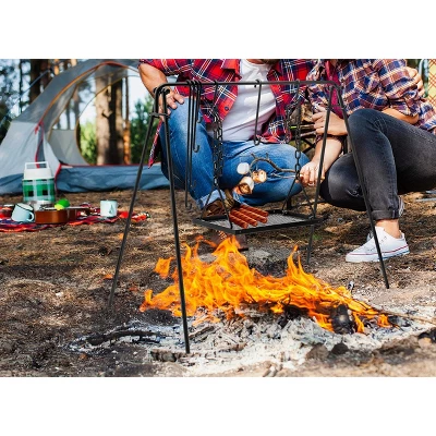Bruntmor’s Portable Campfire Stand is perfect for camp, picnic, or backyard cooking. 34×34″/88*88cm A-type tripod design with collapsible legs and grates. Includes steel hooks and adjustable grate grill. Comes with swing tray for over the fire cooking. Height adjustable for easy temperature control. Easy to assemble and disassemble, weighs 22.3lbs/10.13kg. Enjoy outdoor cooking with Bruntmor’s Grill Swing Campfire Cooking Stand.