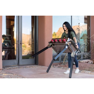 - Portable Design: Collapse the Flat Top Grill 600 for transport by removing the griddle top, folding the dueling side shelves over the grill body, and folding the legs beneath the grill.