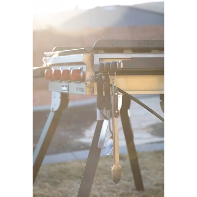 If there’s one thing that’s for sure, it’s that portability is the future. Today more than ever we are on the go and we need reliable equipment to keep us trekking. Get the same large, cold rolled steel griddle top cooking surface you know and love—now housed on a new mobile footprint. Collapsible legs easily fold up beneath the grill body, while the two opposing side shelves fold inwards over the burners for added protection.