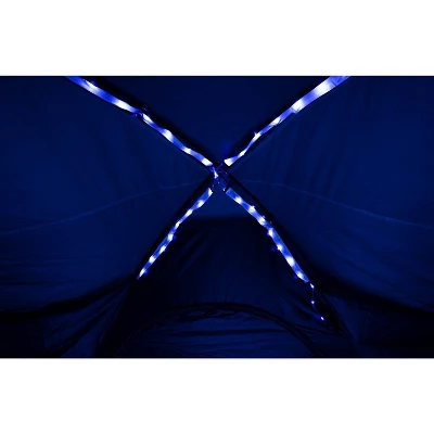 - LED lighting shines warm diffused overhead light throughout tent, powered by 3 AA batteries (not included)