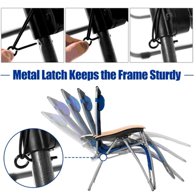 Looking for a portable and comfortable lounge chair? Our zero gravity chair is recommended for you and will not let you down. Made of high quality steel and oxford cloth, this lounge chair is sturdy and durable, and it can hold up to 330 lbs. Featuring freely adjustable design (0-170 degrees) with locking system, this chair takes advantage of the body’s gravity to let you feel relaxed. Moreover, the movable headrest, wide beech wood armrests and thick padded seat and backrest will offer you a comfortable sitting or lying experience. It is convenient for you to carry and store this recliner thanks to its folding design. Enjoy your leisure time with our zero gravity chair!