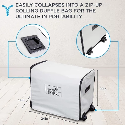 Real bed comfort, real world convenience Whether you are welcoming house guests or adventuring into the great outdoors, comfortable, quality sleep is easier than ever with the Ivation EZ-Bed inflatable mattress with legs. Set up this air bed quickly and easily with its self-deploying frame and automated air pump. The integrated frame folds out to lift your blow up mattress off the ground, providing the comfort and feel of a permanent bed as you climb in and out. A puncture-resistant, polyester top, and internal coils work with 3 distinct comfort settings to provide a restful night of sleep. When you are done, simply fold the air mattress back up into the portable, rolling duffel bag for easy transport and storage. You won’t even miss your everyday mattress with the Ivation EZ-Bed air mattresses with legs.