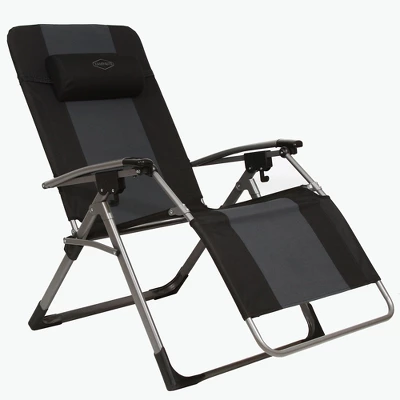 Sit comfortably wherever you are. Strong, comfortable and convenient, the Kamp-Rite Oversized Anti-Gravity Chair is great for porches, boats, campsites, tailgating, and more. You can take this camping chair anywhere because it sports a strong-yet-lightweight, powder-coated steel frame that is easy to fold and carry. This folding chair reclines easily with dual adjustment levers located below each arm rest. With a removable and easy-to-position head pillow, you’ll stay comfortable as you sit on this reclining chair.The all-around favorite chair has been made even better with additional room to stretch out and relax. This outdoor camping chair measures 21 inches long, 30 inches wide, and 45 inches tall when set up and up to 66 inches long when stretched out. The camping chair holds up to 350 pounds, making it a great piece of camp furniture for anyone.this reclining chair provides stress-free relaxation in any environment. So, sit back, relax, and enjoy your time in the backyard, on the patio, at your campsite, or tailgating on the the Kamp-Rite Oversized Anti-Gravity Chair.