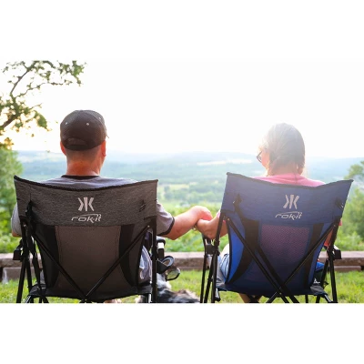 The Kijaro Rok-it blends unparalleled comfort and style, making it the ultimate adventure companion. With the Rok-it by your side, you can sit back and enjoy the journey wherever you go. This portable rocker folds down and can easily fit into the carry bag making it easy to store with your other camping gear. Don’t want to use a carry bag? This camping chair also includes a buckle on the back so you can just fold, clip, and go! This portable rocking chair also has padded armrests and a flip out cupholder. This collapsible rocking chair will keep you cool with the mesh back, and the custom rear chair feet help you rock smoothly all day long.
