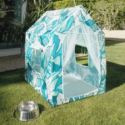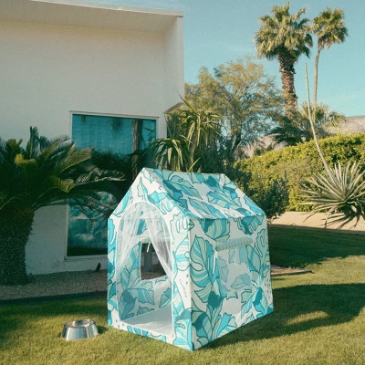 Introducing the PUP-ANA™… the cabana for your pups! Designed in Chicago by Emily Vaca of La Vaca, The THAT’S BANANA(LEAVES) Pup-ana features the Minnidip Signature palm leaf pattern and turns your backyard or beach hangout into a tropical oasis for your pup! Featuring shaded protection, mesh curtain, and openings on each side, the Pup-ana creates a breezy retreat for pups, big and small! Pup Pup Hooray!