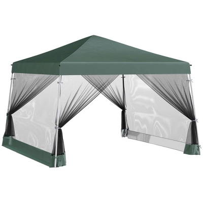 - POP-UP SHADE ON THE GO: This screen house can be set up in a cinch for events like camping, cookouts, company barbeques, fairs, farmers markets, concerts, and anything catered. Simply unfold the frame, mount to the ground with the included support stakes, and you’re ready to go. Shade any space anywhere and tear down as fast as you set up by folding it back down into the convenient carrying bag.