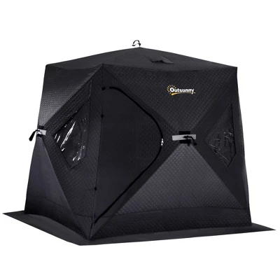 With a warm design, this tent for fishing ensures that weather down to -22℉/-30℃ is a scenario you’re ready for. The dense 300D waterproof fabric will keep you protected and dry, while offering the durability you need in outdoor life. In half a minute, your set-up is over, so fishing time comes right away. You don’t need to waste your trip on preparation. Carry the tent with backstraps that double function as shoulder straps. This fish tent pod from Outsunny keeps in warmth.