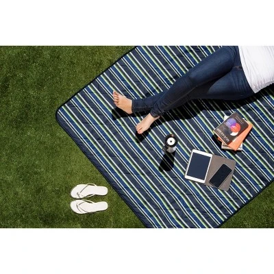 Disney Nightmare Before Christmas Jack Vista Outdoor Picnic Blanket & Tote – Beach Blanket – Camping Blanket, (Blue Stripe Pattern with Navy Blue Exterior)