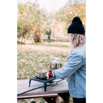 Double Burner Cast Iron Stove is great for cooking those special outdoor meals. It features include 2 high output 15000 B.T.U. burners for 30000 total B.T.U. It features brass valves and a sturdy cast iron frame that is powder coated and painted for long lasting durability. Hose and regulator needed for operation, sold separately.