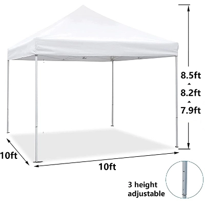 SUGIFT 10 ft. x 10 ft. Pop Up Canopy Tent provides shade to keep you comfortable. You can set it up in minutes without any tools and move it anywhere easily with the pop-up design and a Wheeled Bag. It is the canopy that you need for sporting events, park, backyard,party,camping,flea markets, trade shows, a day at the beach or just shade on a hot day. You and your guests are free to relax and rest under the cool canopy. Enjoy your day with it.Features3 height adjustable:7.9ft,8.2ft,8.5ft